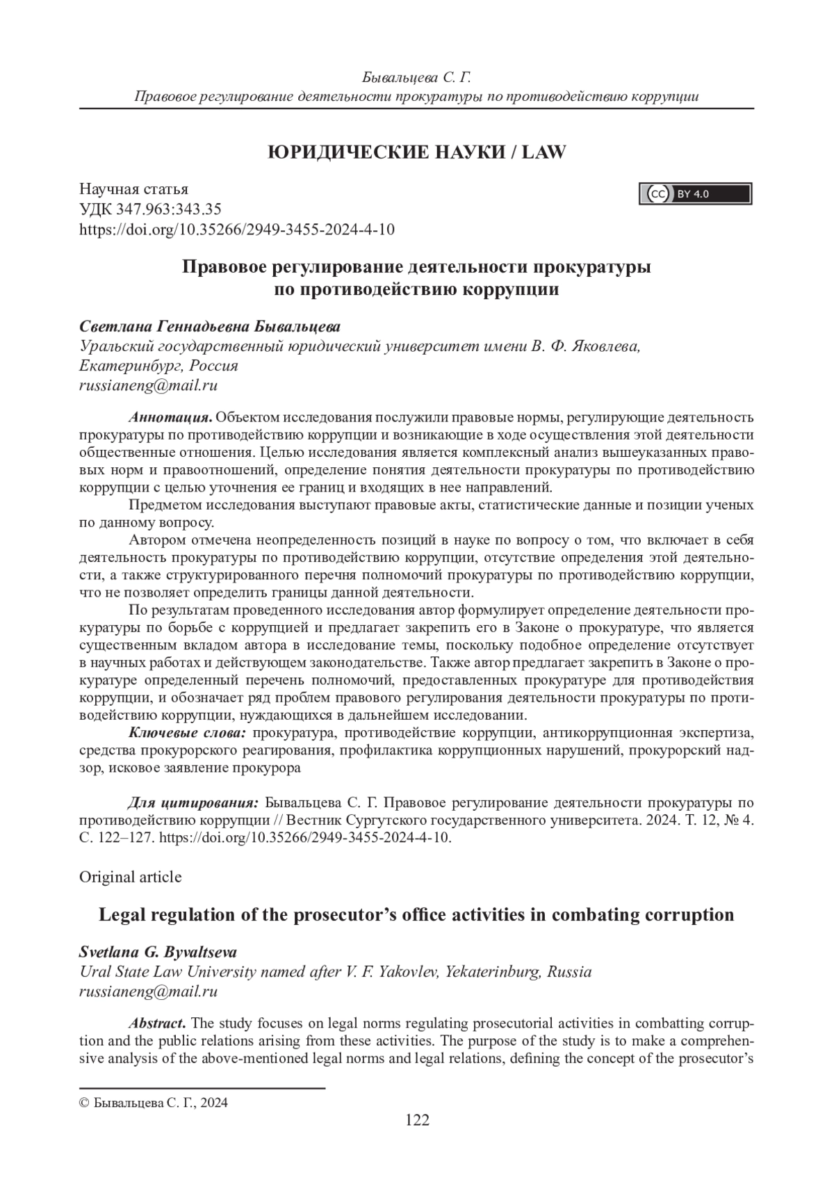 11. Рашева Н. Ю. Органы прокуратуры как субъекты антикоррупционного просвещения: направления совершенствования законодательства // Вопросы российского и международного права. 2023. Т. 13, № 7-1. С. 7-20.