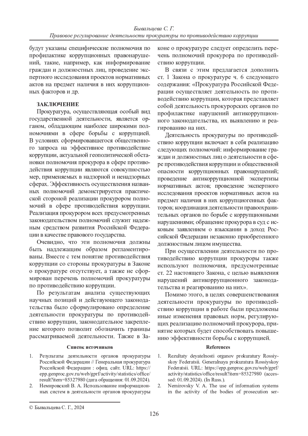 2. Немировский В. А. Использование информационных систем в деятельности органов прокуратуры по противодействию коррупции // Законность. 2023. № 1. С. 19-23.