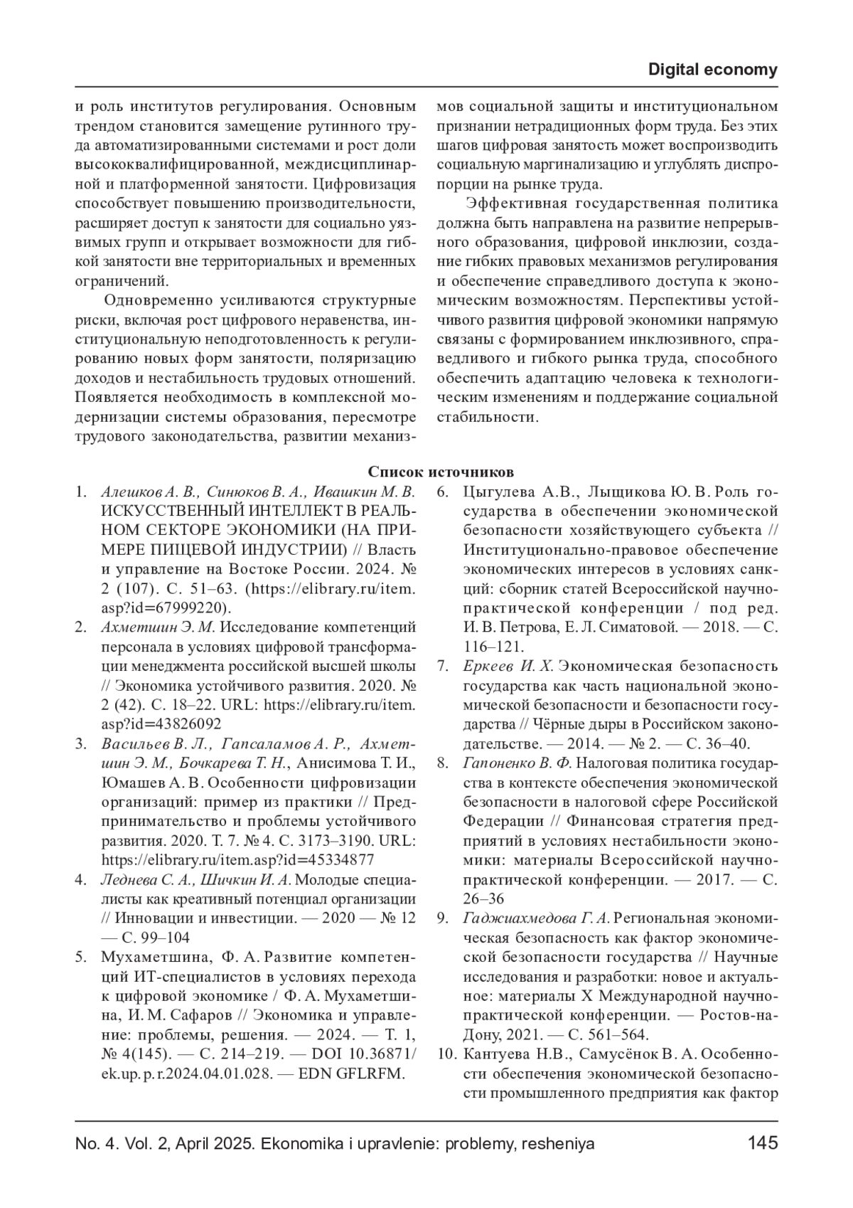 Переход к цифровой экономике сопровождается масштабной трансформацией производственных и социальных процессов, затрагивая все сферы деятельности, включая рынок труда.