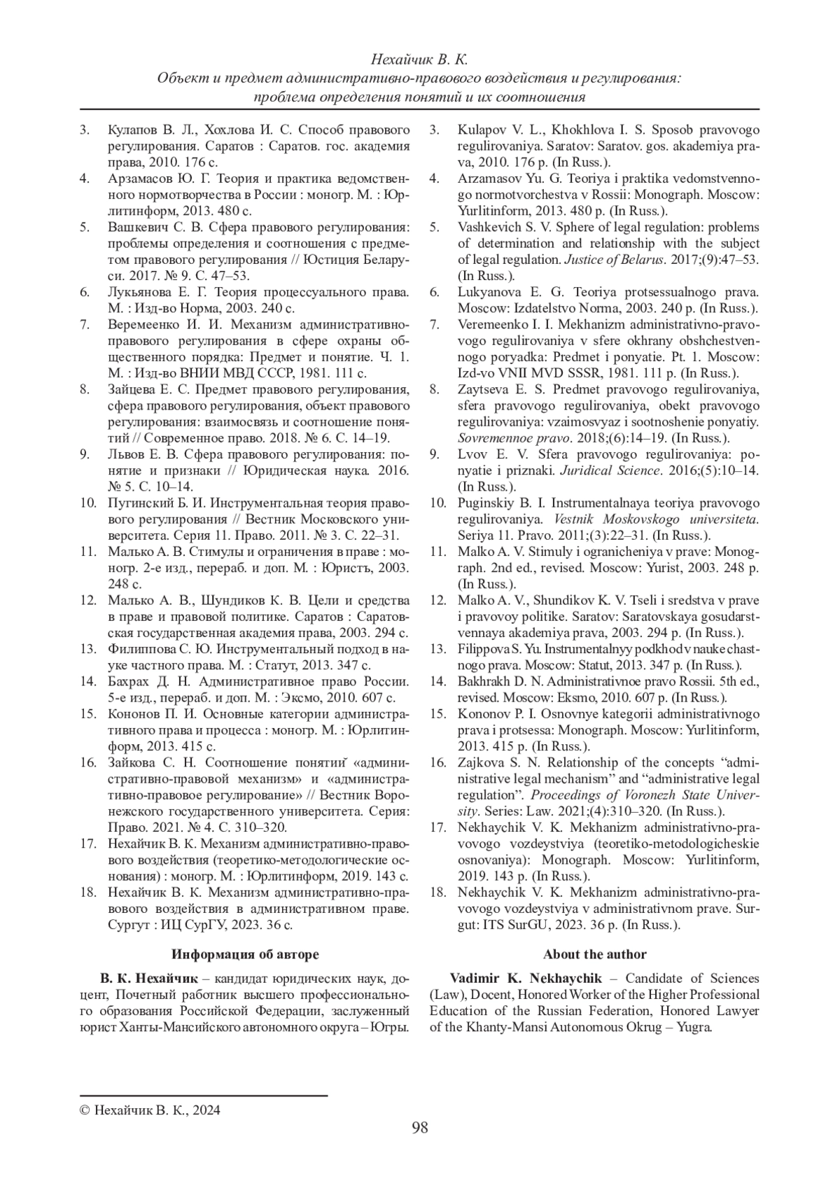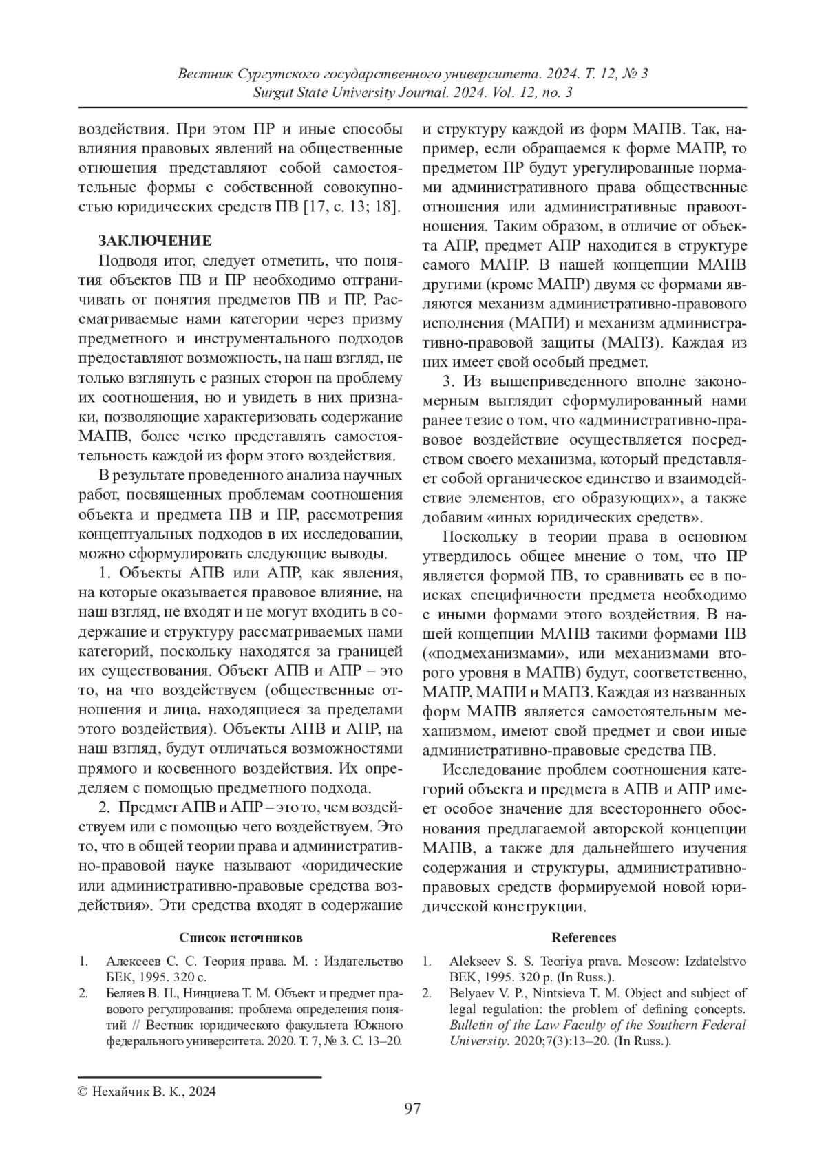 2. Беляев В. П., Нинциева Т. М. Объект и предмет правового регулирования: проблема определения понятий // Вестник юридического факультета Южного федерального университета. 2020. Т. 7, № 3. С. 13-20.