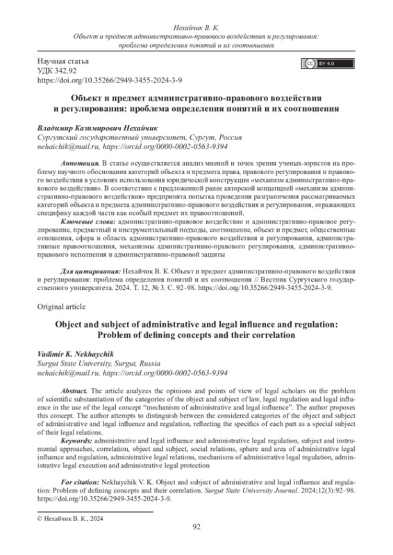 18. Нехайчик В. К. Механизм административно-правового воздействия в административном праве. Сургут : ИЦ СурГУ, 2023. 36 с.