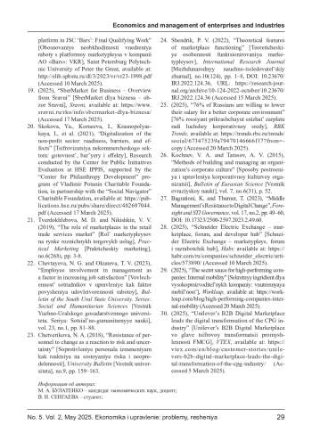 24. Шендрик П. В. Теоретические особенности функционирования маркетплейсов // Международный научно-исследовательский журнал. - 2022. - № 10 (124). - С. 1-8. URL: https://research-journal.org/archive/10-1242022-october/ (дата обращения: 15.03.2025). DOI: 10.23670/IRJ.2022.124.36 EDN: ABHKFK