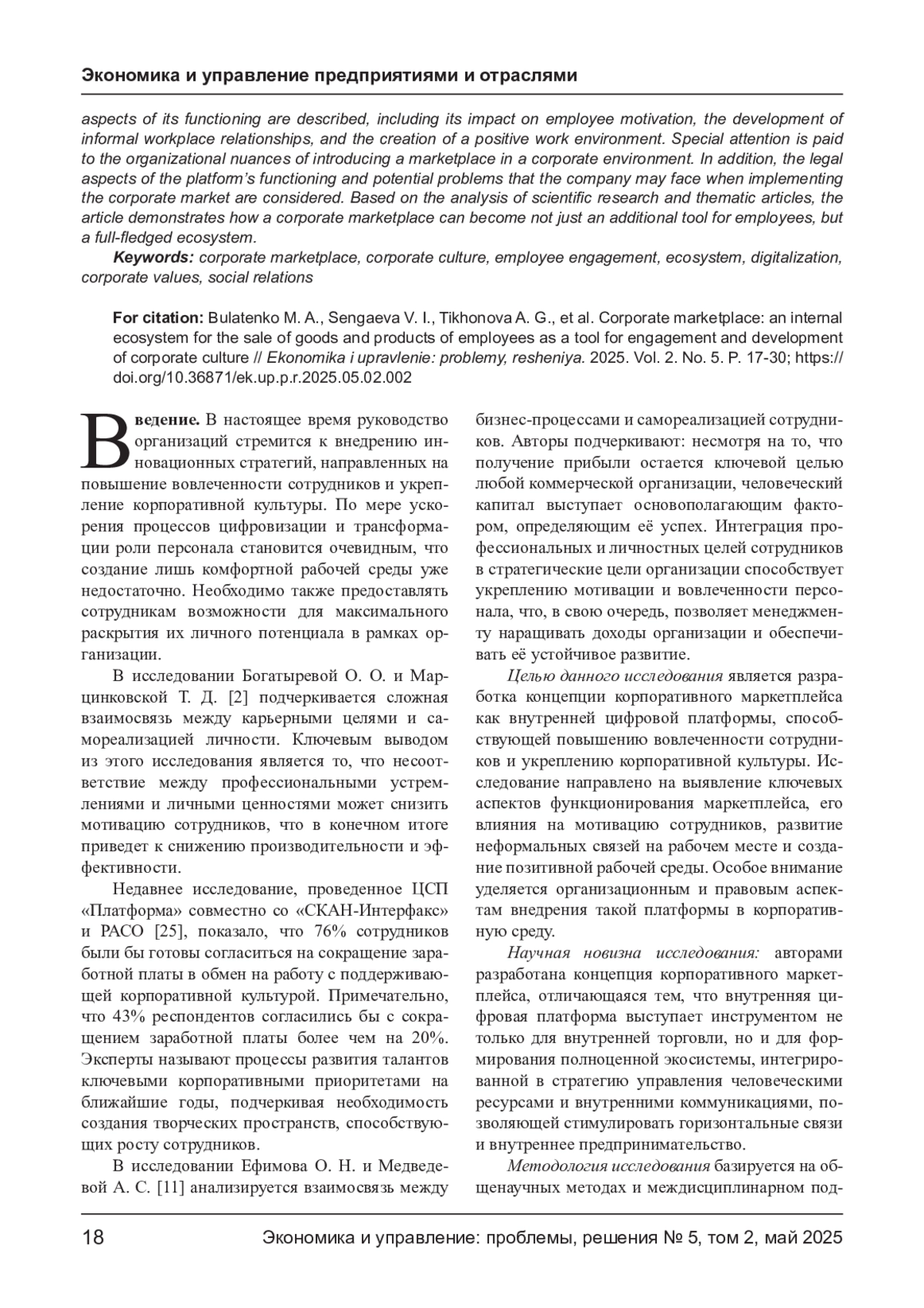 В статье рассматривается концепция корпоративного маркетплейса как внутренней цифровой платформы, предназначенной для стимулирования предпринимательской активности сотрудников и укрепления корпоративной культуры. Описываются ключевые аспекты его функционирования, в том числе его влияние на мотивацию сотрудников, развитие неформальных связей на рабочем месте и создание позитивной рабочей среды. Особое внимание уделяется организационным нюансам внедрения маркетплейса в корпоративной среде. Кроме того, рассматриваются правовые аспекты функционирования платформы, потенциальные проблемы, с которыми может столкнуться компания при внедрении корпоративного рынка. Основанная на анализе научных исследований и тематических статей, статья демонстрирует, как корпоративный маркетплейс может превратиться не просто в дополнительный инструмент для сотрудников, а стать полноценной экосистемой.