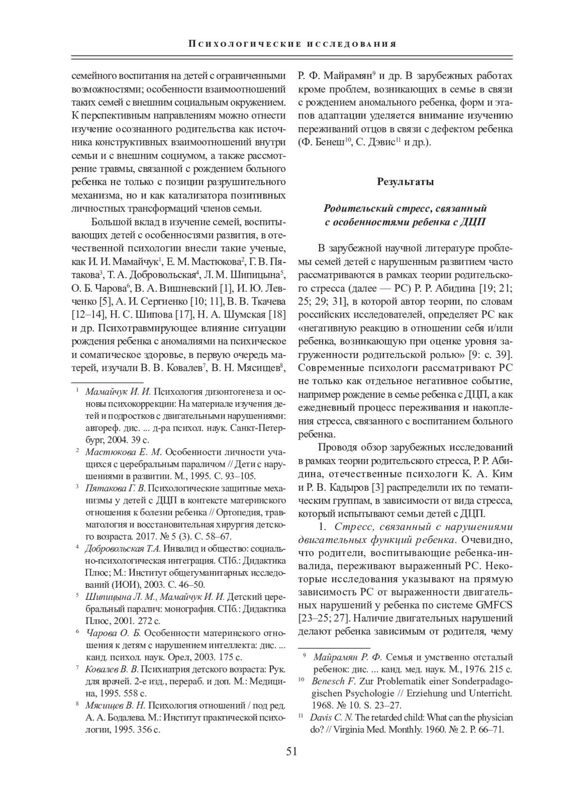 3. Ким К. А., Кадыров Р. В. Родительский стресс и воспитание ребенка с детским церебральным параличом: обзор зарубежных исследований // Клиническая и специальная психология. 2022. Т. 11. № 4. С. 1-29. DOI: 10.17759/cpse.2022110401 EDN: QDTHGF