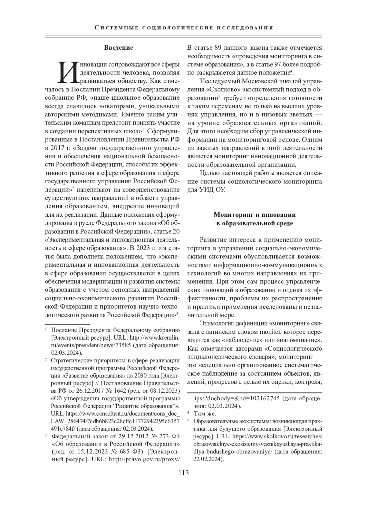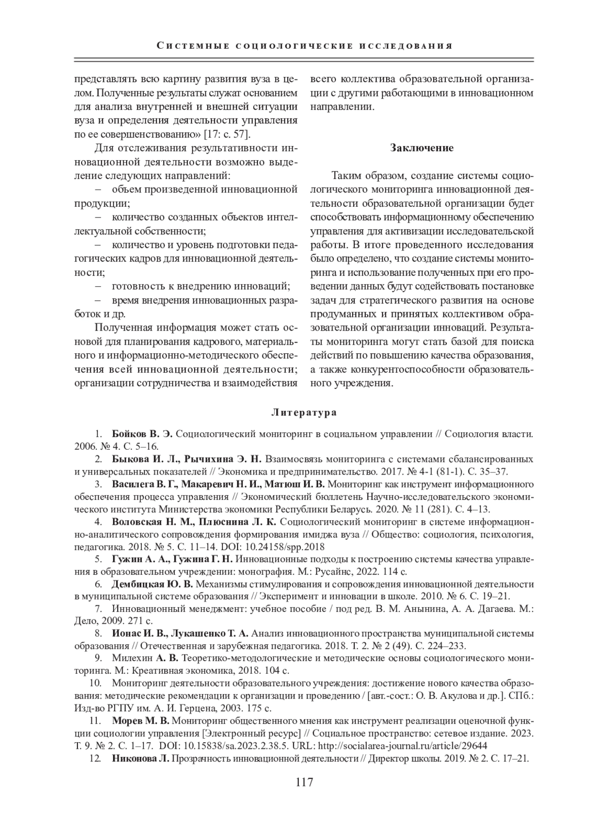 Статья: СИСТЕМНЫЙ ПОДХОД К СОЦИОЛОГИЧЕСКОМУ МОНИТОРИНГУ ИННОВАЦИОННОЙ ДЕЯТЕЛЬНОСТИ ОБРАЗОВАТЕЛЬНОЙ ОРГАНИЗАЦИИ (2024)
