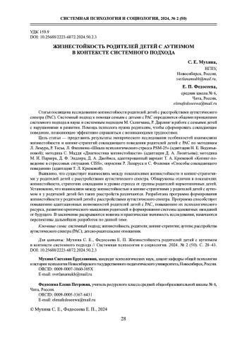 19. Kavaliotis P. Resilience of parents with a child with autism spectrum disorders and factors for its potential enhancement: family income and educational level // Journal of Educational and Developmental Psychology. 2017. Vol. 7. № 1. P. 188. DOI: 10.5539/jedp.v7n1p188
