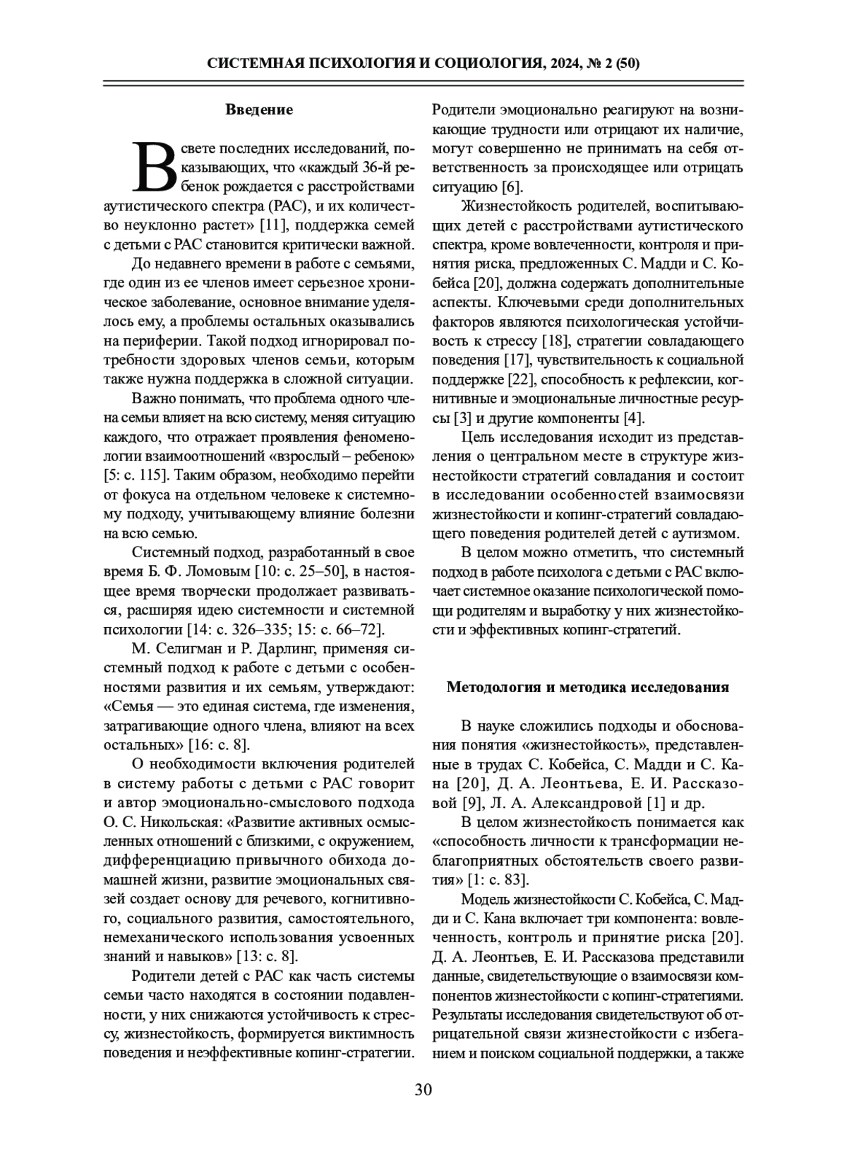 23. Profiles of social and coping resources in families of children with autism spectrum. Disorder: Relations to Parent and Child / A. Zaidman-Zait et al. // Journal of Autism and Developmental Disorders. 2018. Vol. 48 (6). P. 2064-2076. DOI: 10.1007/s10803-018-3467-3 EDN: AGUSDM