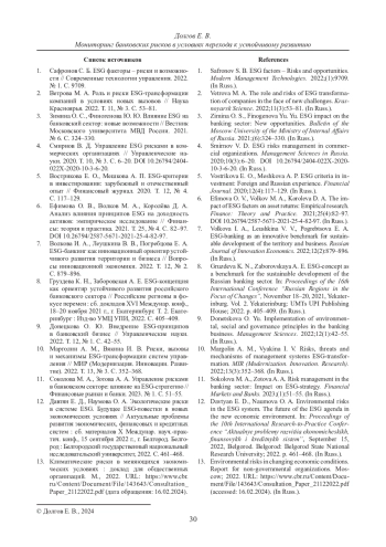 Статья: МОНИТОРИНГ БАНКОВСКИХ РИСКОВ В УСЛОВИЯХ ПЕРЕХОДА К УСТОЙЧИВОМУ РАЗВИТИЮ (2024)