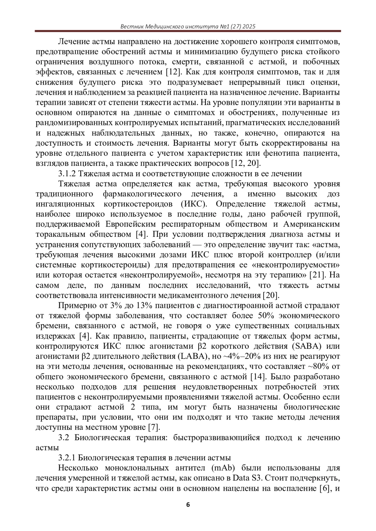 6. Нестерова И.В. // Астма. 2009. T 10, № 1. - C. 20-22. EDN: LEUAQX