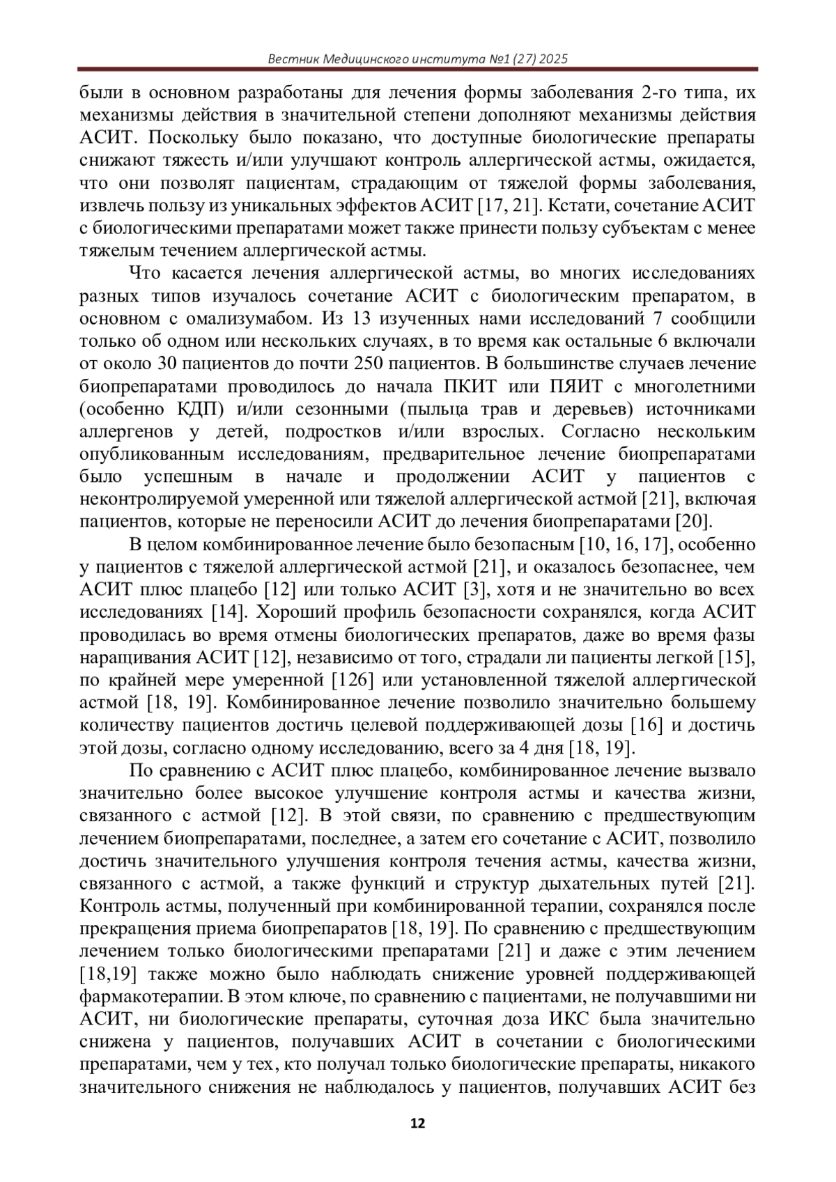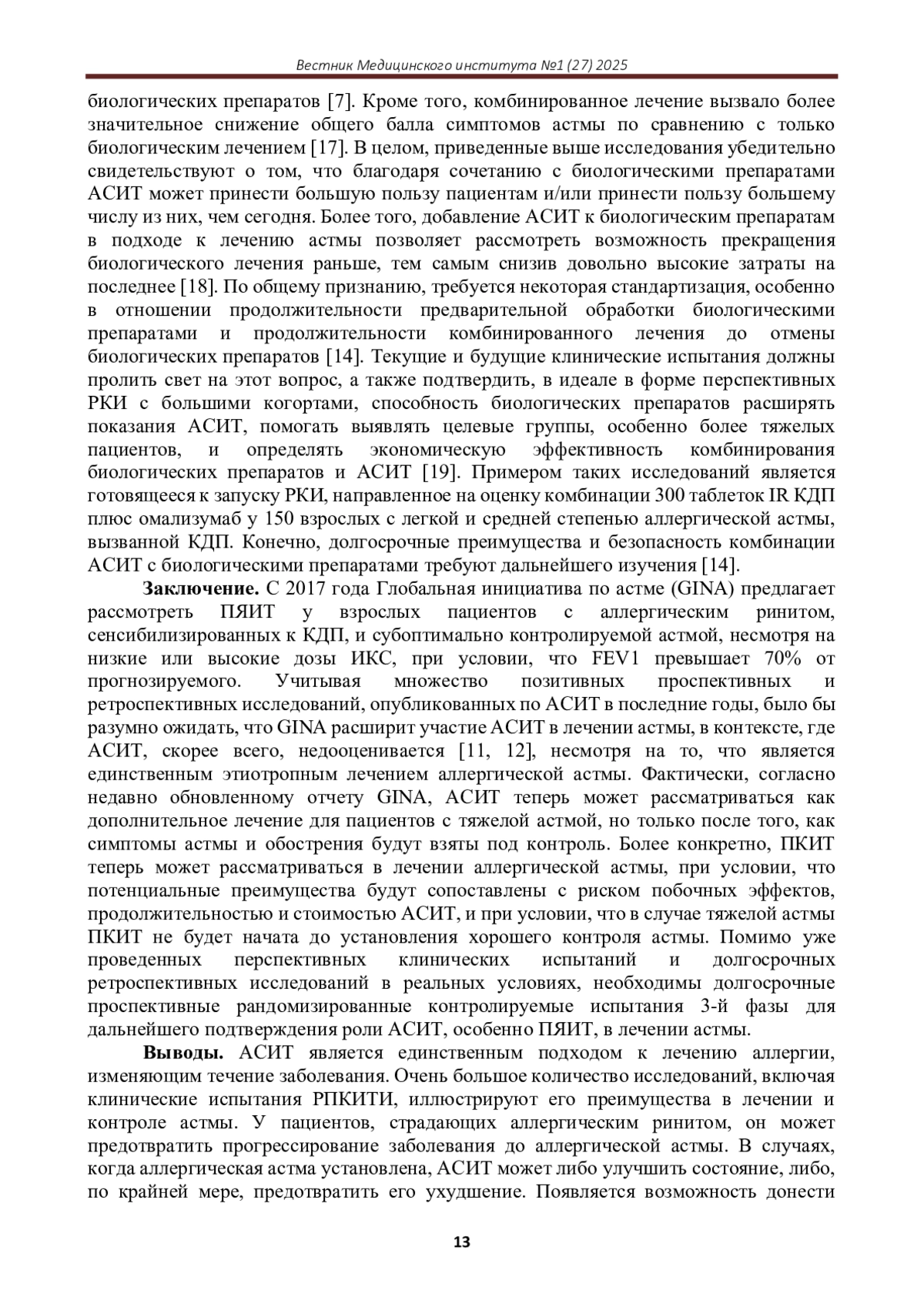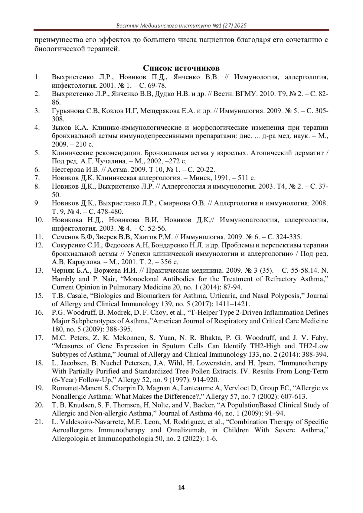 13. Черняк Б.А., Воржева И.И. // Практическая медицина. 2009. № 3 (35). - C. 55-58.14. N. Hambly and P. Nair, “Monoclonal Antibodies for the Treatment of Refractory Asthma”, Current Opinion in Pulmonary Medicine 20, no. 1 (2014): 87-94.