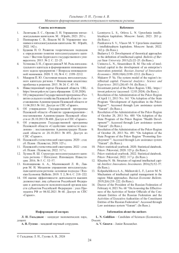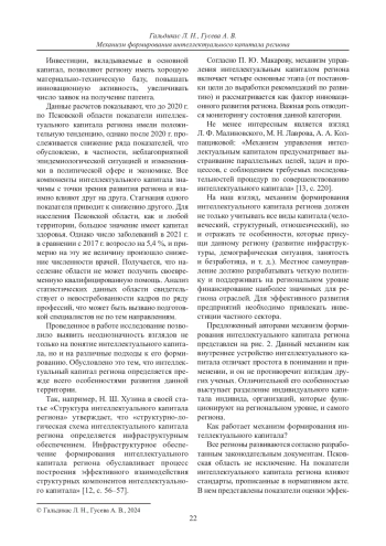 Статья: МЕХАНИЗМ ФОРМИРОВАНИЯ ИНТЕЛЛЕКТУАЛЬНОГО КАПИТАЛА РЕГИОНА (2024)