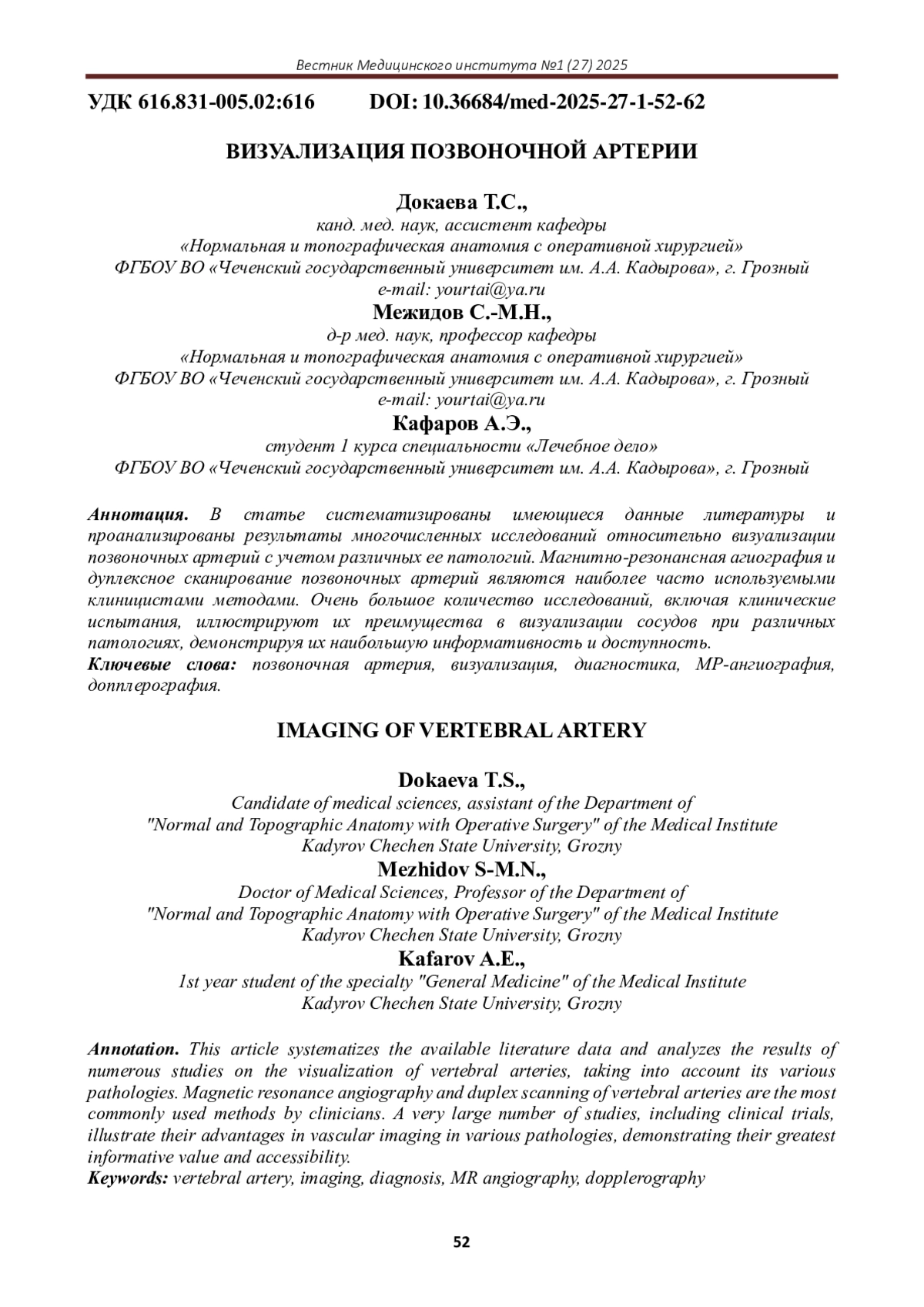 4. Джалкхи, А.М. Спондилогенные нарушения кровообращения в вертебрально-базилярном бассейне (клинические варианты, комплексное лечение): автореф. дис.. канд. мед. наук. - Санкт-Петербург, 2015.