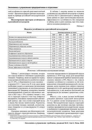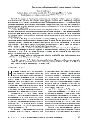 Статья: ИНДЕКСИРОВАНИЕ ФАКТОРОВ УСТОЙЧИВОСТИ РОССИЙСКОЙ МЕТАЛЛУРГИИ И АНАЛИЗ ВКЛАДА ФАКТОРОВ В УСТОЙЧИВОСТЬ (2025)