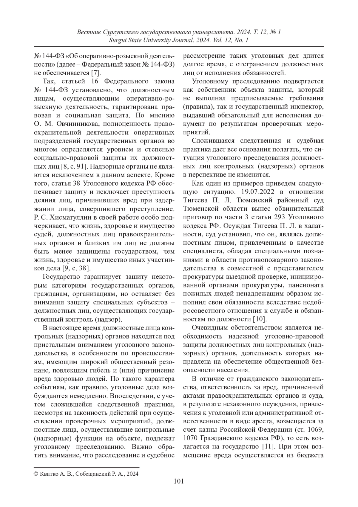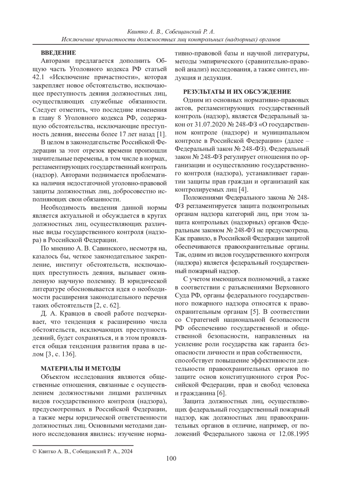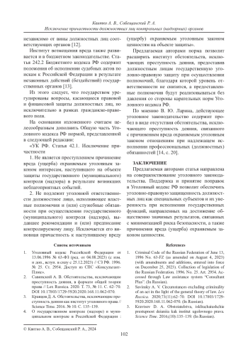 КВИТКО А. В., СОБЕЩАНСКИЙ Р. А. ИСКЛЮЧЕНИЕ ПРИЧАСТНОСТИ ДОЛЖНОСТНЫХ ЛИЦ КОНТРОЛЬНЫХ (НАДЗОРНЫХ) ОРГАНОВ // ВЕСТНИК СУРГУТСКОГО ГОСУДАРСТВЕННОГО УНИВЕРСИТЕТА. 2024. ТОМ 12, № 1