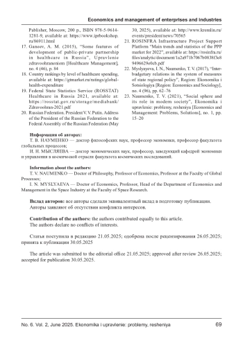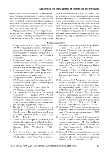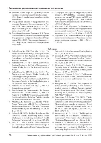 17. Ганеев А. М. Некоторые особенности развития государственно-частного партнерства в здравоохранении в России // Управление здравоохранением. - 2015. - № 4(46). - С. 84.