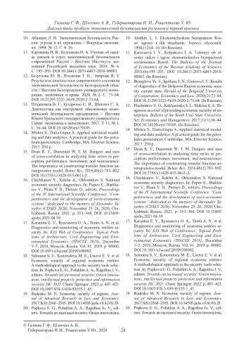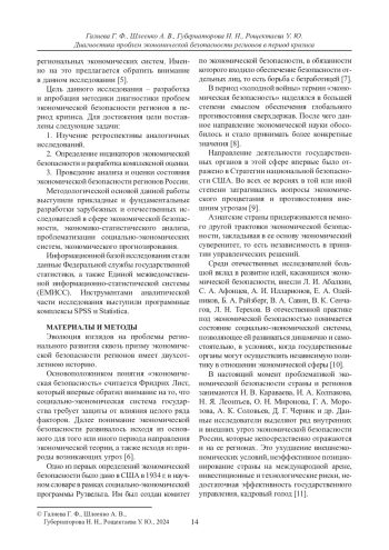 Статья: ДИАГНОСТИКА ПРОБЛЕМ ЭКОНОМИЧЕСКОЙ БЕЗОПАСНОСТИ РЕГИОНОВ В ПЕРИОД КРИЗИСА (2024)