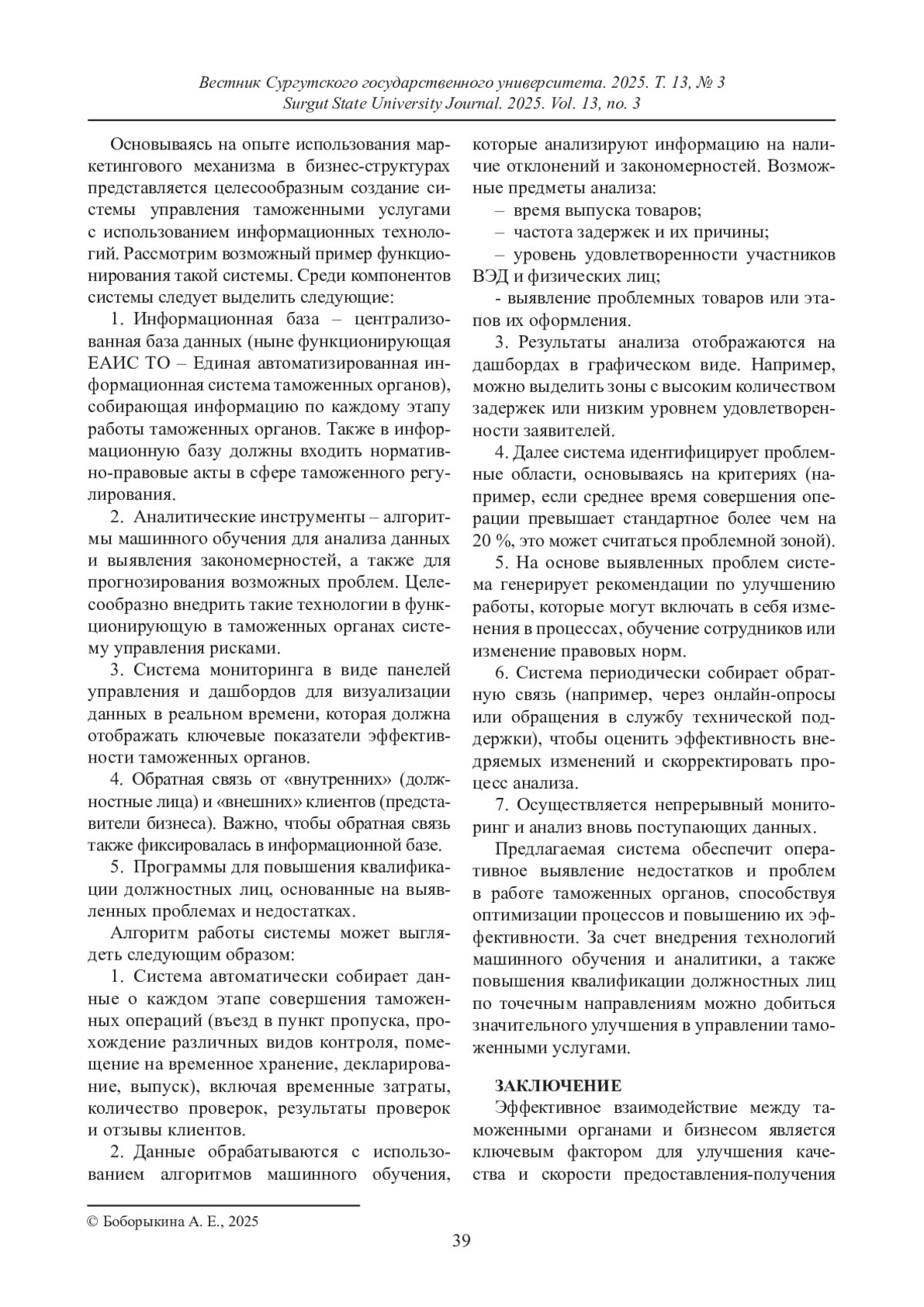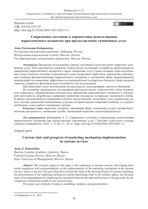 1. Колчева Д. В., Некрасова О. Л. Теоретические основы таможенного маркетинга в контексте его развития и функционирования // Вестник Сургутского государственного университета. 2024. Т. 12, № 1. С. 27-36. https://doi. org/10.35266/2949-3455-2024-1-3.
