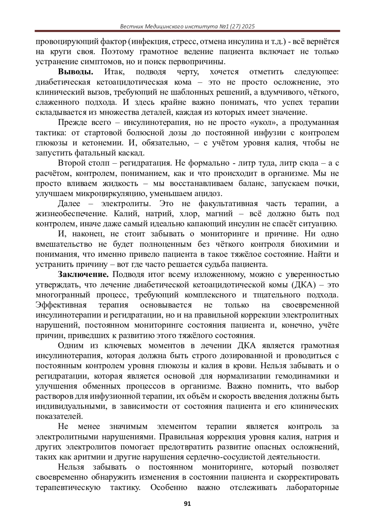 Статья: ПРИНЦИПЫ ЗАМЕСТИТЕЛЬНОЙ ИНСУЛИНОТЕРАПИИ И РЕГИДРАТАЦИИ У ПАЦИЕНТОВ С ДЕКОМПЕНСИРОВАННЫМ ДИАБЕТИЧЕСКИМ КЕТОАЦИДОЗОМ И РАЗВИВАЮЩЕЙСЯ НА ЕГО ФОНЕ КОМЫ (2025)