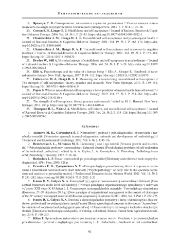 21. Chamberlain J. M., Haaga D. A. F. Unconditional self-acceptance and psychological health // Journal of Rational-Emotive & Cognitive-Behavior Therapy. 2001. Vol. 19. № 3. P. 163-176. :1011189416600. DOI: 10.1023/A EDN: ARLASN