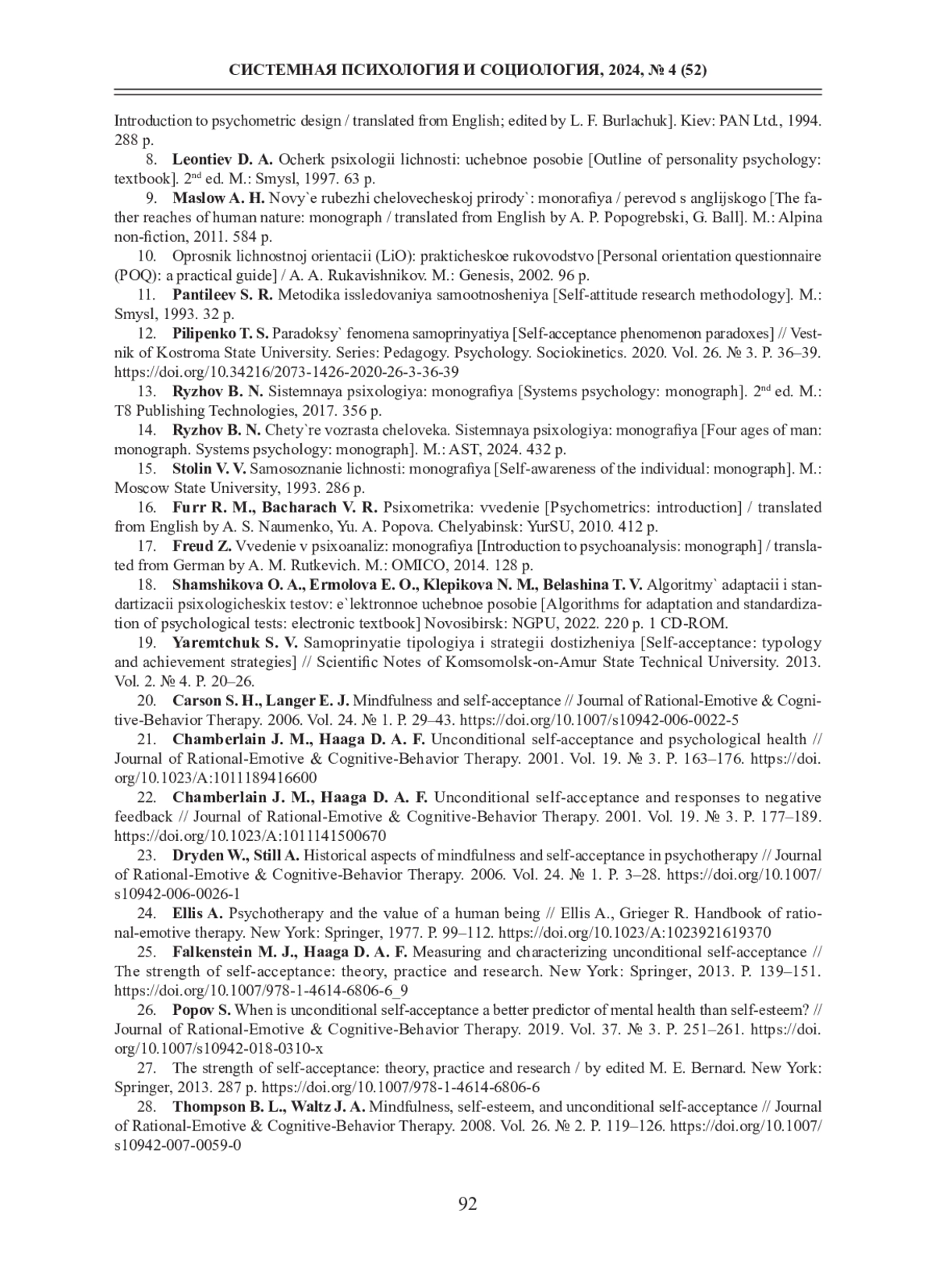 25. Falkenstein M. J., Haaga D. A. F. Measuring and characterizing unconditional self-acceptance // The strength of self-acceptance: theory, practice and research. New York: Springer, 2013. Р. 139-151. DOI: 10.1007/978-1-4614-6806-6_9