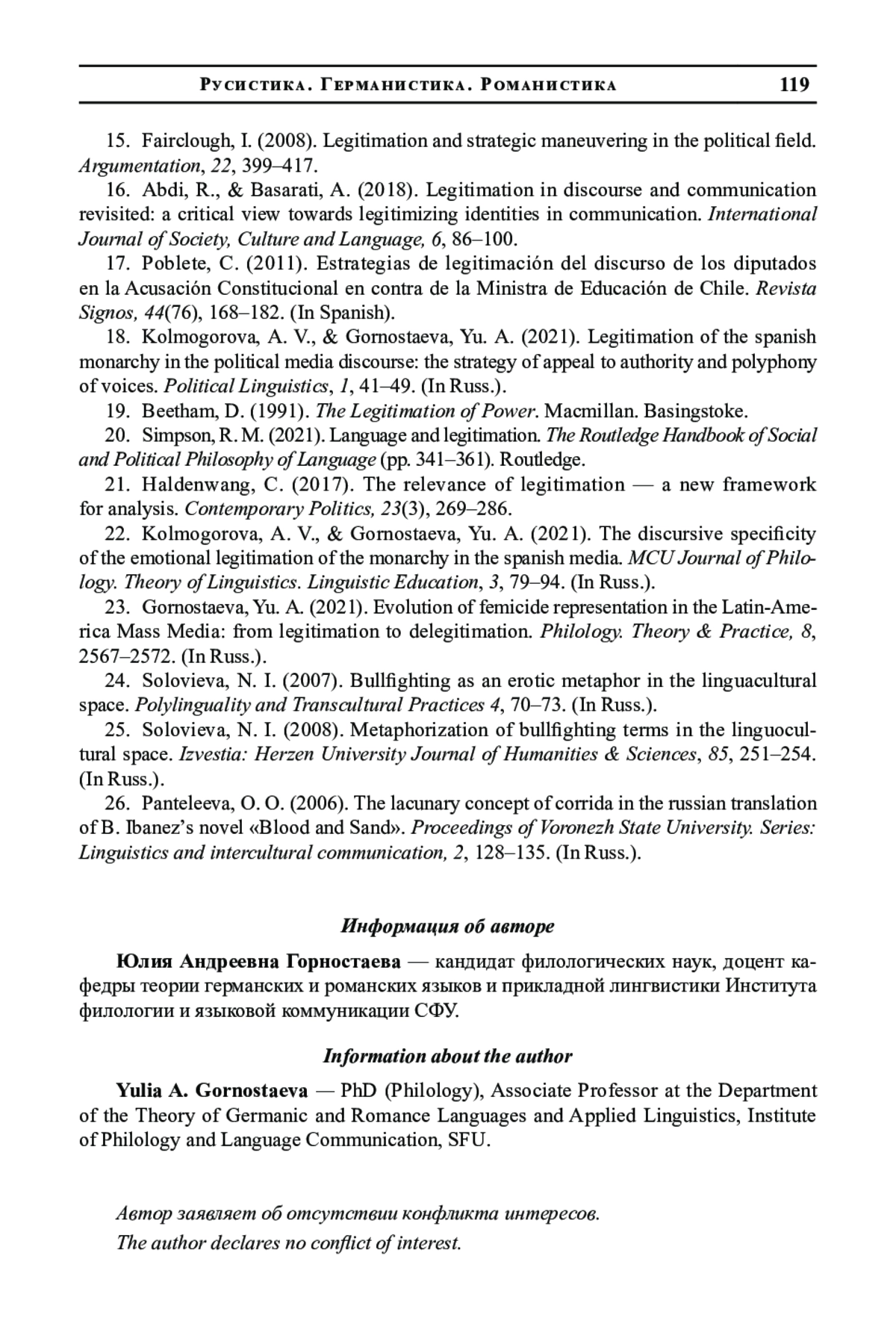 10. Ромашова, И. П. (2013). Легитимность как когнитивно-прагматическая дискурсивная категория. Вестник Челябинского государственного университета, 84, 126-128. EDN: SIPJJZ