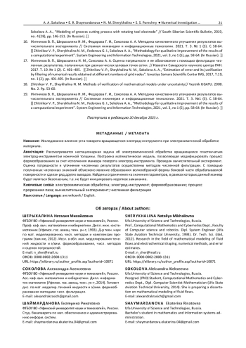 19. Житников В. П., Шерыхалина Н. М., Федорова Г. И., Соколова A. A. Методика качественного улучшения результатов вычислительного эксперимента // Системная инженерия и информационные технологии. 2021. Т. 3. №1 (5). С. 58-64. EDN: UHOMZT