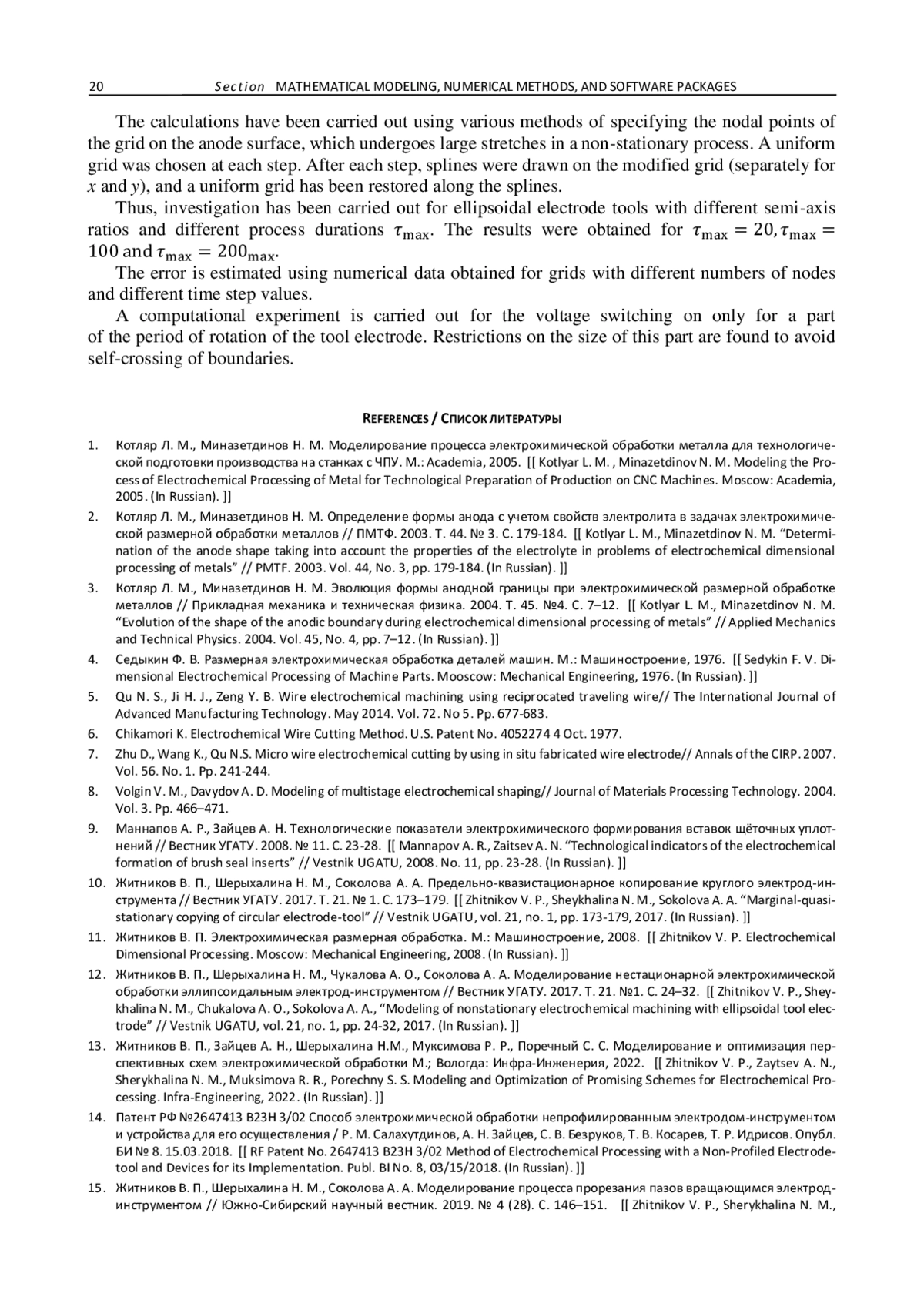 10. Житников В. П., Шерыхалина Н. М., Соколова A. A. Предельно-квазистационарное копирование круглого электрод-инструмента // Вестник УГАТУ. 2017. Т. 21. № 1. С. 173-179. EDN: YLYCML