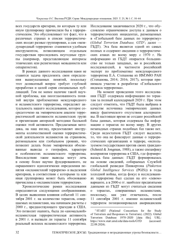 После терактов 11 сентября 2001 г. против гражданских и военных объектов на территории США новостные ленты, а следом и страницы научных изданий наполнились публикациями о росте террористической угрозы со стороны исламистских группировок.
