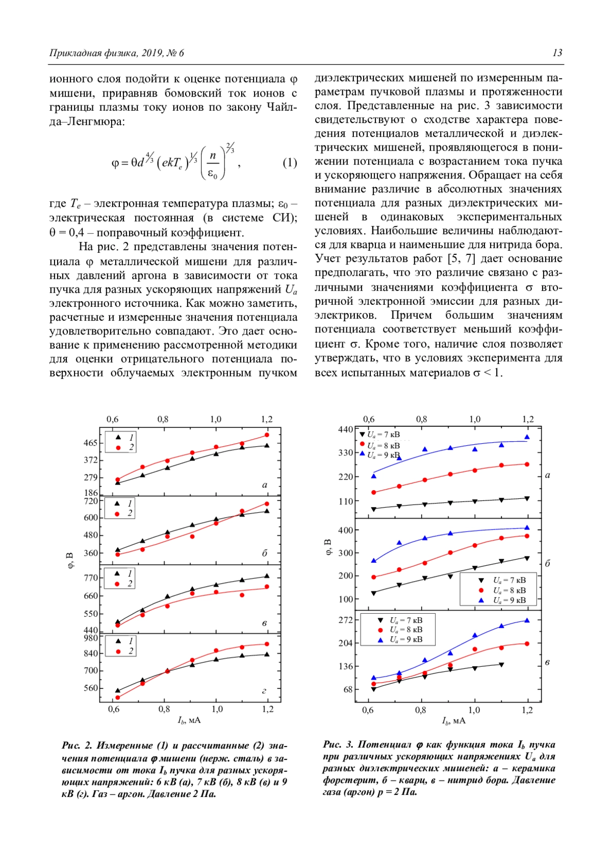 The summary list of the articles published in Prikladnaya Fizika in 2019 113