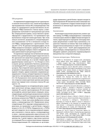 1. Donald J.S., Konstantinov I.E. Surgical aortic valvuloplasty versus balloon aortic valve dilatation in children. World J Pediatr Congenit Heart Surg. 2016;7(5):583-91. PMID: 27587493. DOI: 10.1177/2150135116651091 PMID: 27587493
