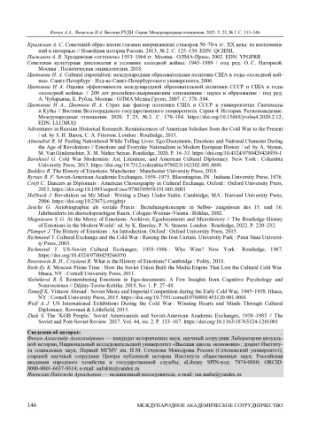 Ключевые фразы: СОВЕТСКО-АМЕРИКАНСКИЕ ОТНОШЕНИЯ, академические обмены, холодная война, история повседневности, ИСТОРИЯ ЭМОЦИЙ, эго-документы, СОВЕТОЛОГИЯ, культурная дипломатия, соглашение лэйси - зарубина, студенческая мобильность