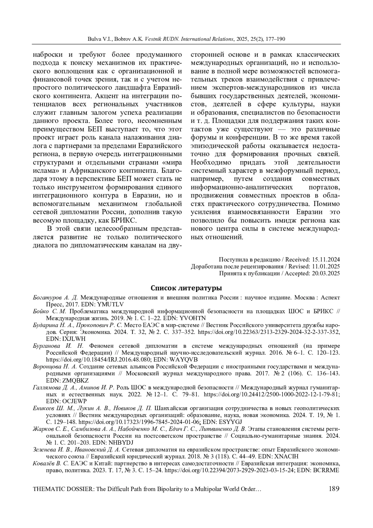 1. Богатуров А. Д. Международные отношения и внешняя политика России: научное издание. Москва: Аспект Пресс, 2017. EDN: YMUTLV