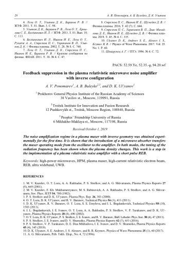 1. Кузелев М. В., Лоза О. Т., Рухадзе А. А., Стрелков П. С., Шкварунец А. Г. // Физика плазмы. 2001. Т. 27. № 8. С. 710.