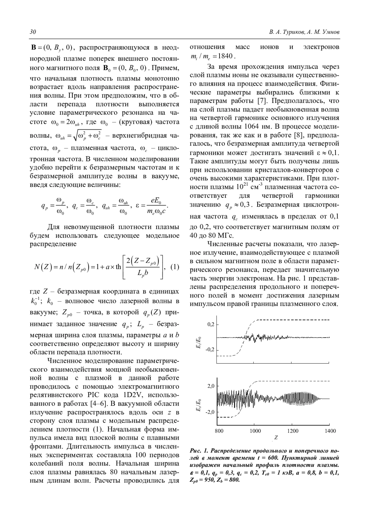 Туриков В. А., Умнов А. М. Параметрическое взаимодействие мощного лазерного излучения с плазмой в сильном магнитном поле 29
