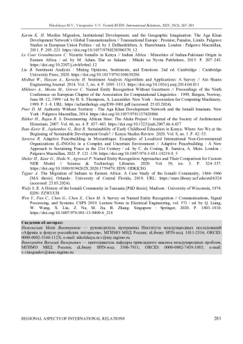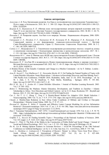 2. Бахриев Б. Х., Боришполец К. П. “Мягкая сила” негосударственных акторов мировой политики: кейс Ага Хана IV и его институтов // Вестник Томского государственного университета. 2022. № 481. С. 66-76. ;. DOI: 10.17223/15617793/481/8 EDN: VWMKCA