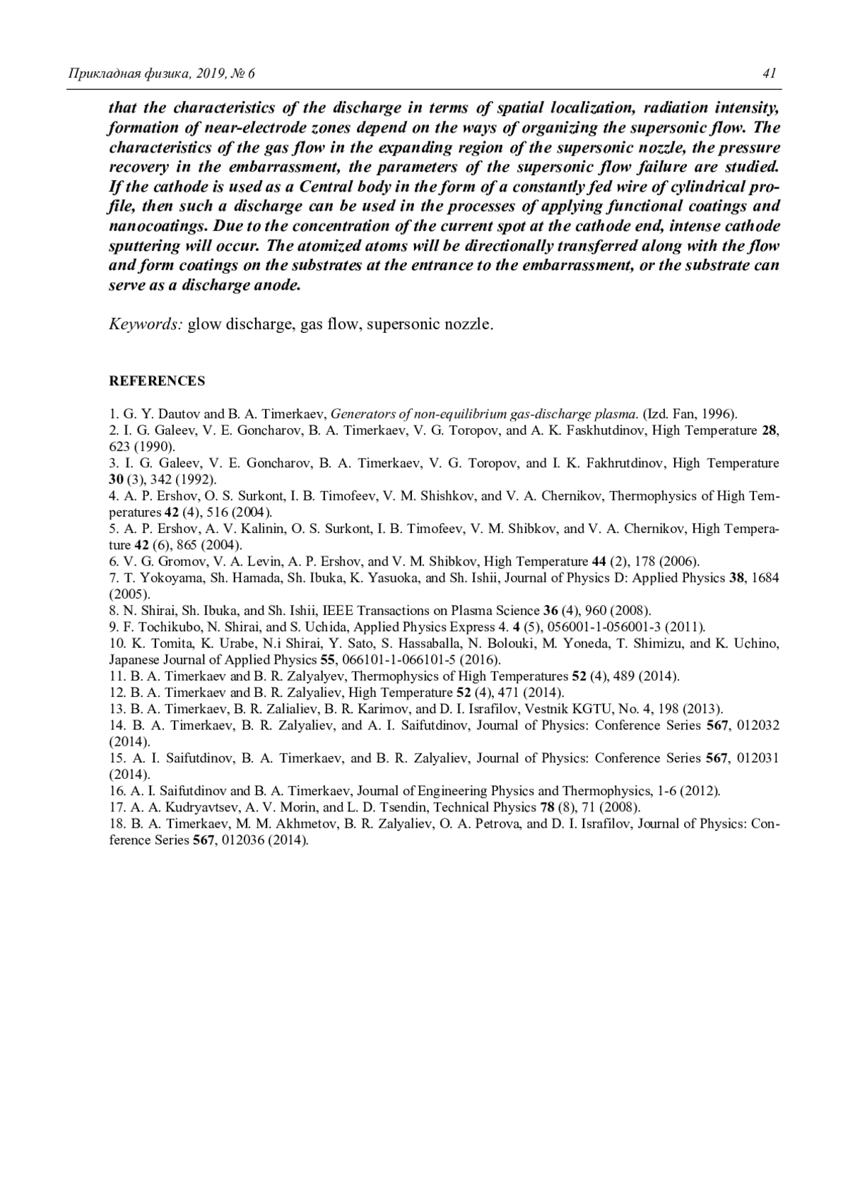 B. A. Timerkaev, R. S. Shamsutdinov, D. I. Israfilov, and B. R. Shakirov Glow discharge in a longitudinal supersonic flow 34