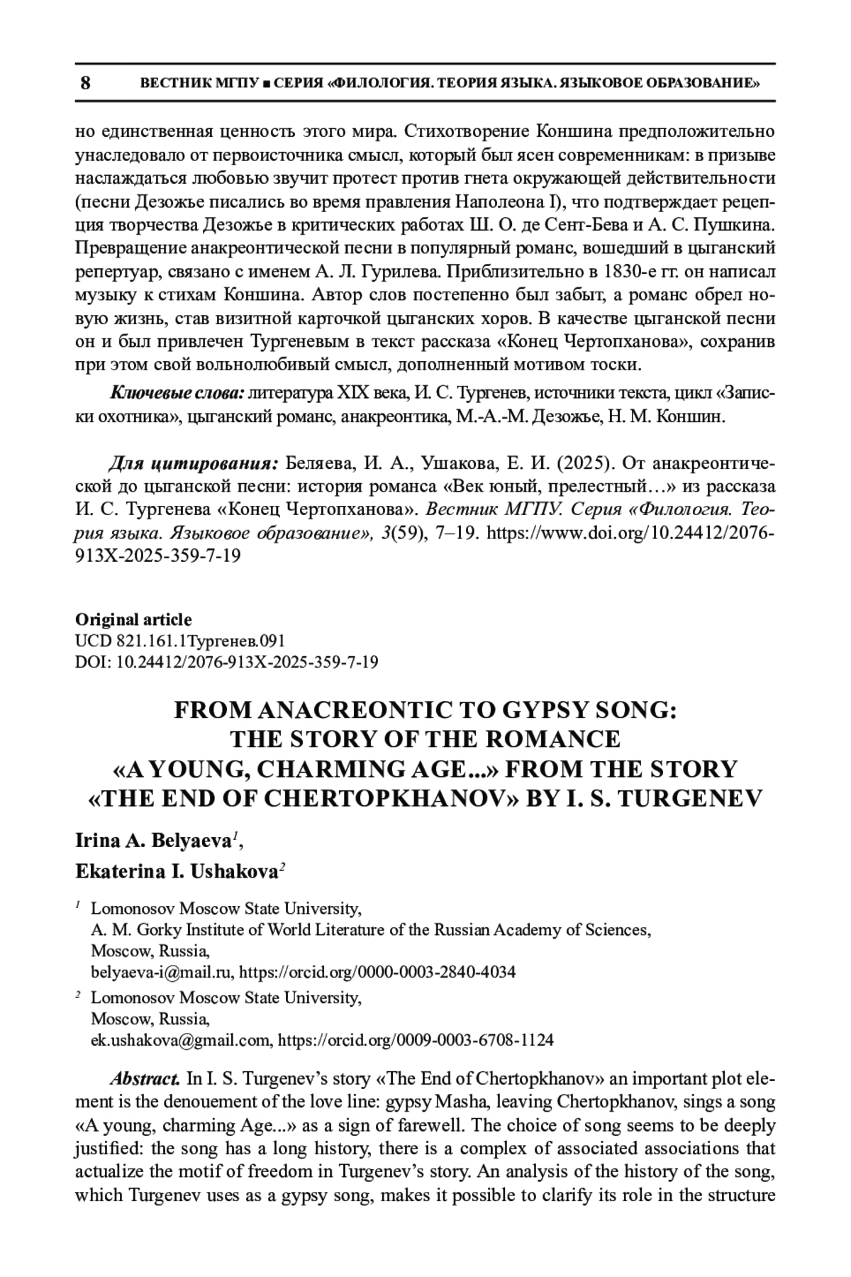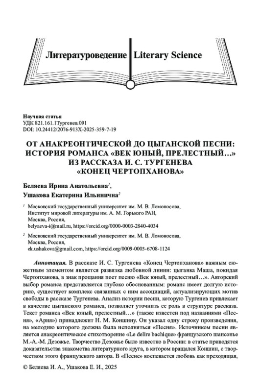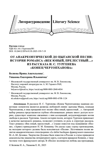 26. Андреева, В. Г. (2021). Эпический синтез в позднем творчестве И. С. Тургенева. Научный диалог, (11), 202-215. DOI: 10.24224/2227-1295-2021-11-202-215 EDN: PJGUXU