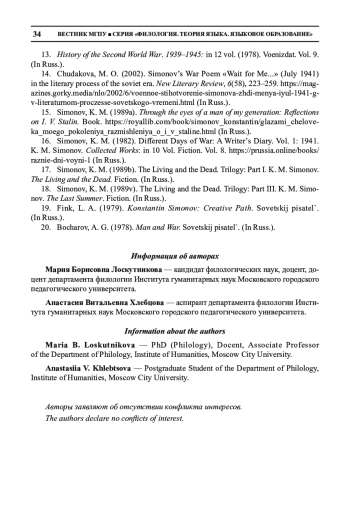 7. Гареев, М. А. (2006). Константин Симонов как военный писатель: история Великой Отечественной войны в творчестве Симонова и ее современные толкования. ИНСАН. EDN: QSLSWJ