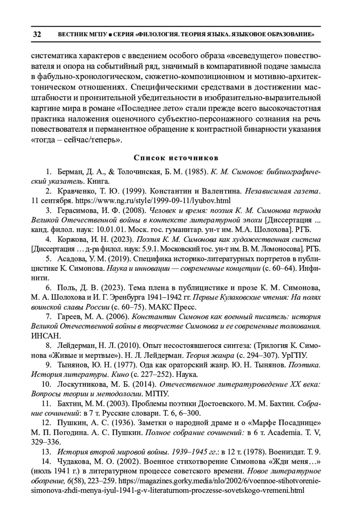 4. Коржова, И. Н. (2023). Поэзия К. М. Симонова как художественная система [Диссертация.. д-ра филол. наук: 5.9.1. Московский гос. ун-т им. В. М. Ломоносова]. РГБ.