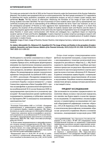 Статья: Образ ислама и мусульман в восприятии современных студентов (2025)