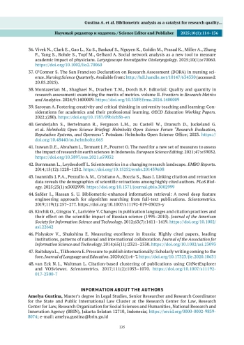 28. Норрис С. Библиометрия и оценка исследований: польза и злоупотребления (рецензия на книгу). Журнал «Библиотечное дело и научная коммуникация». 2019;7(1):eP2286. DOI: 10.7710/2162-3309.2286