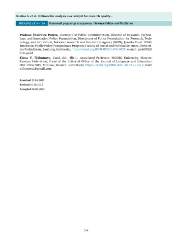 Results. The bibliometric visualization revealed a fragmented discourse, where normative frameworks for responsible metrics are conceptually visible but poorly integrated into performance-driven evaluation literature. Illustrative national cases (e. g., China, Italy, Indonesia) further demonstrate the divergence between policy rhetoric and implementation. The article proposes a multi-level conceptual model of metric responsibility that captures individual, institutional, and national dimensions of reform.