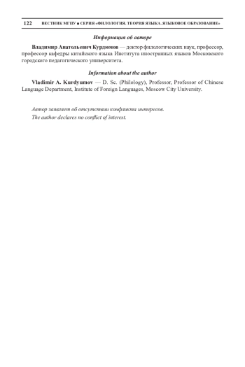9. Курдюмов, В. А. (2014). Морфологический уровень китайского языка как изолирующего топикового. Сущность и содержание позиции частицы. Вестник МГПУ. Серия “Филология. Теория языка. Языковое образование”, 1(13), 37-46. EDN: SBWYIV