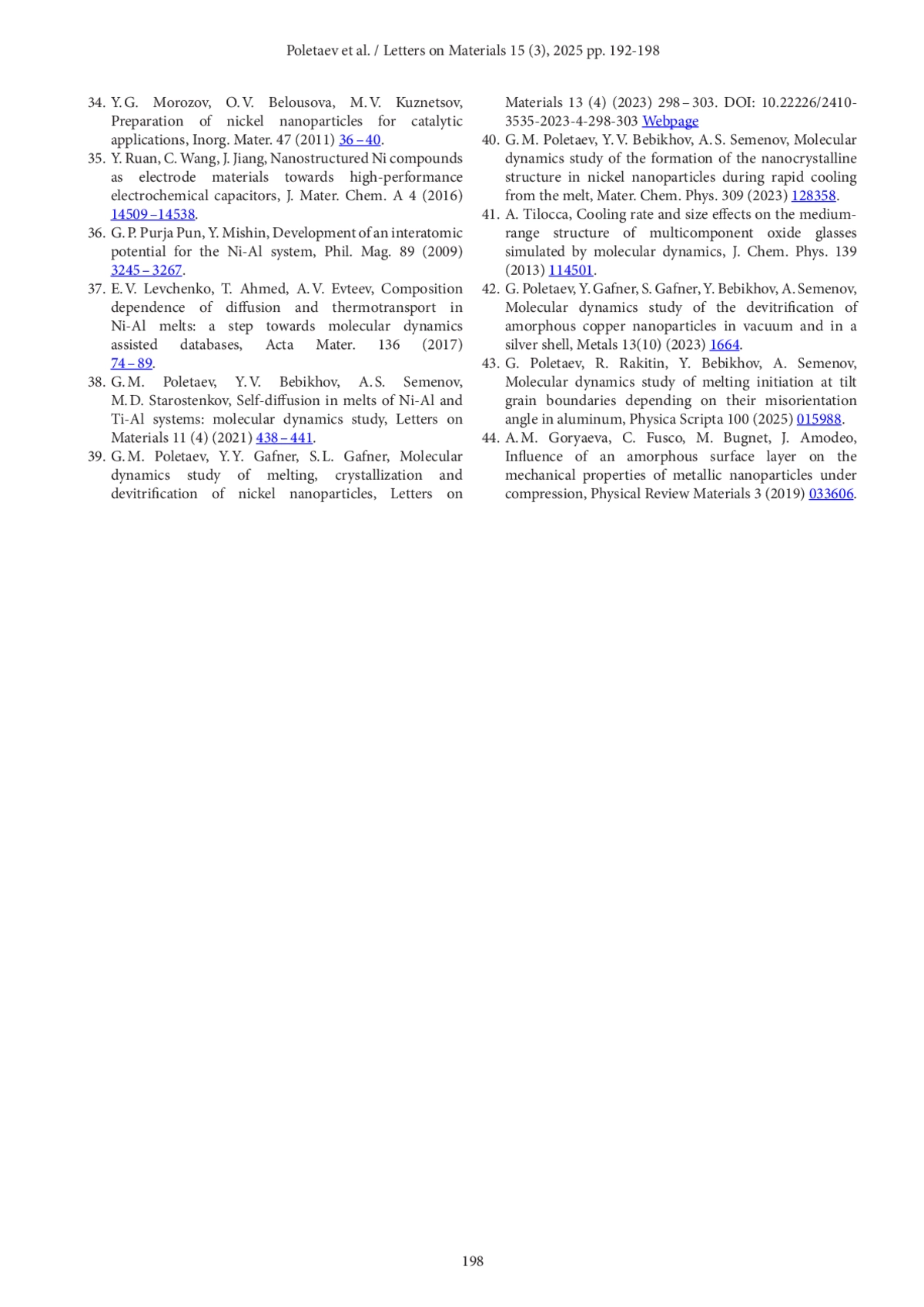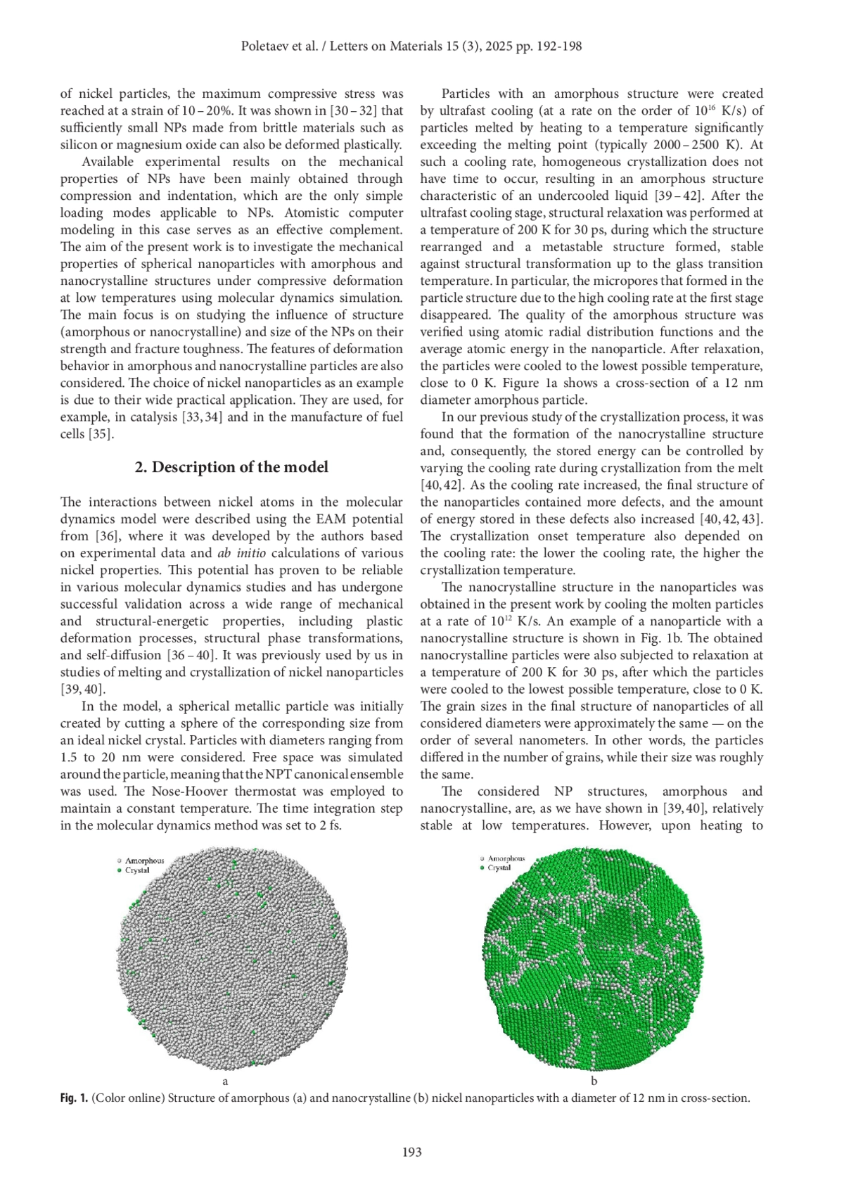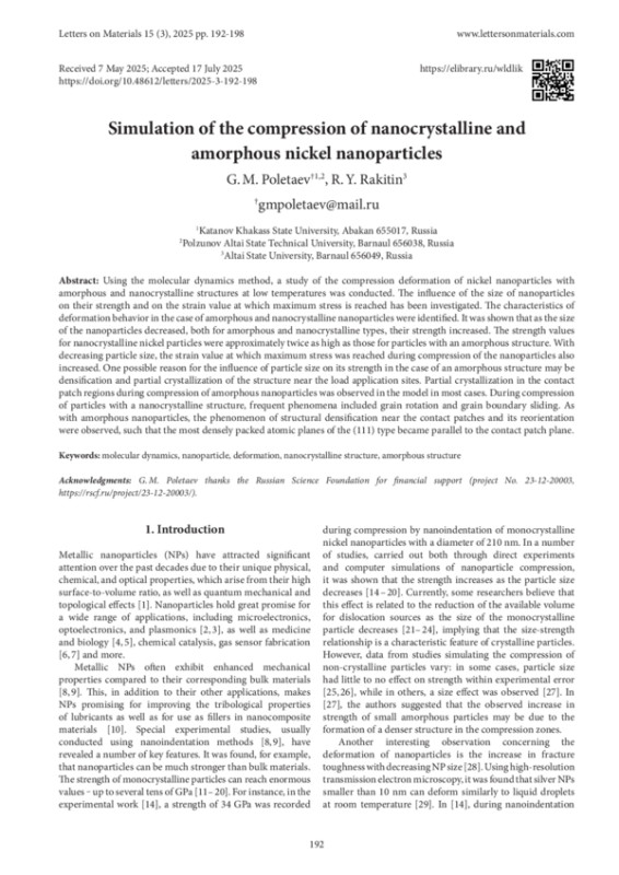ПОЛЕТАЕВ Г. М., РАКИТИН Р. Ю. SIMULATION OF THE COMPRESSION OF NANOCRYSTALLINE AND AMORPHOUS NICKEL NANOPARTICLES // ПИСЬМА О МАТЕРИАЛАХ. 2025. № 3 (59), ТОМ 15