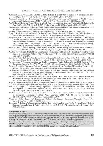 18. Clark M. Indonesia’s Postcolonial Regional Imaginary: From a ‘Neutralist’ to an ‘All-Directions’ Foreign Policy // Japanese Journal of Political Science. 2011. Vol. 12, iss. 2. P. 287-304. DOI: 10.1017/s1468109911000089