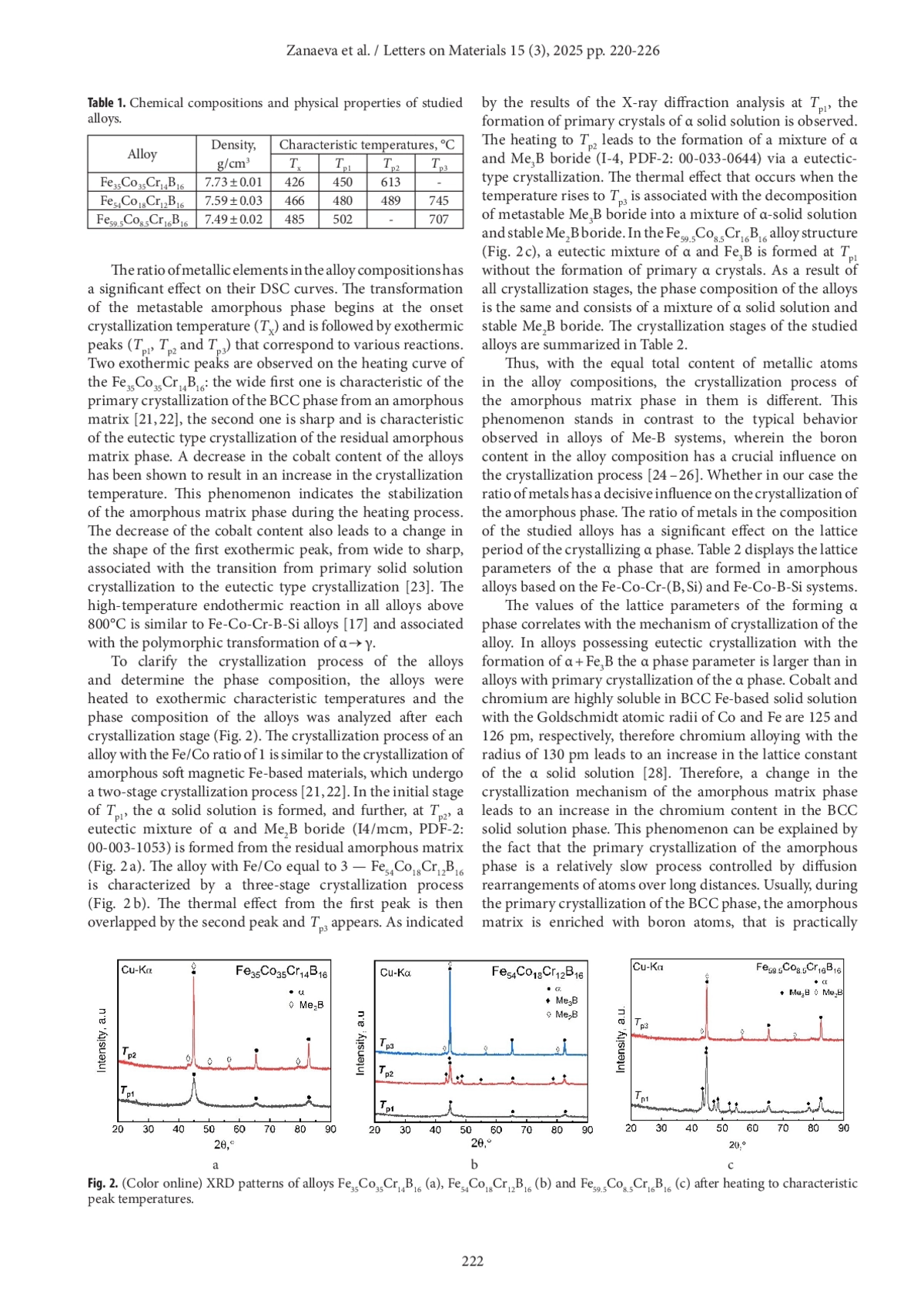 Статья: Structure and magnetic properties of amorphous alloys of the Fe-Co-Cr-B system with varying Fe / Co ratios (2025)