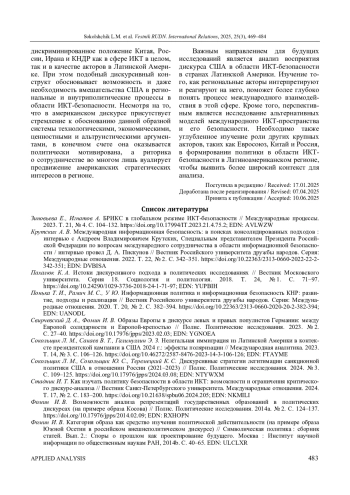 1. Зиновьева Е., Игнатов А. БРИКС в глобальном режиме ИКТ-безопасности // Международные процессы. 2023. Т. 21, № 4. С. 104-132. ;. DOI: 10.17994/IT.2023.21.4.75.2 EDN: AVLWZW