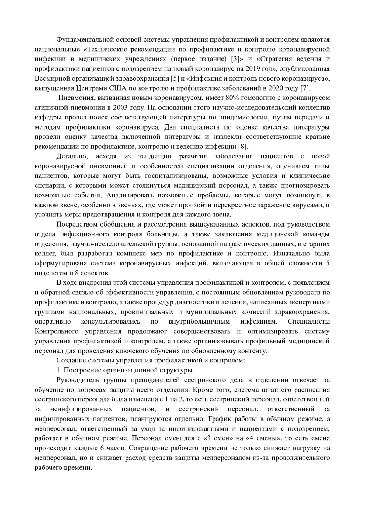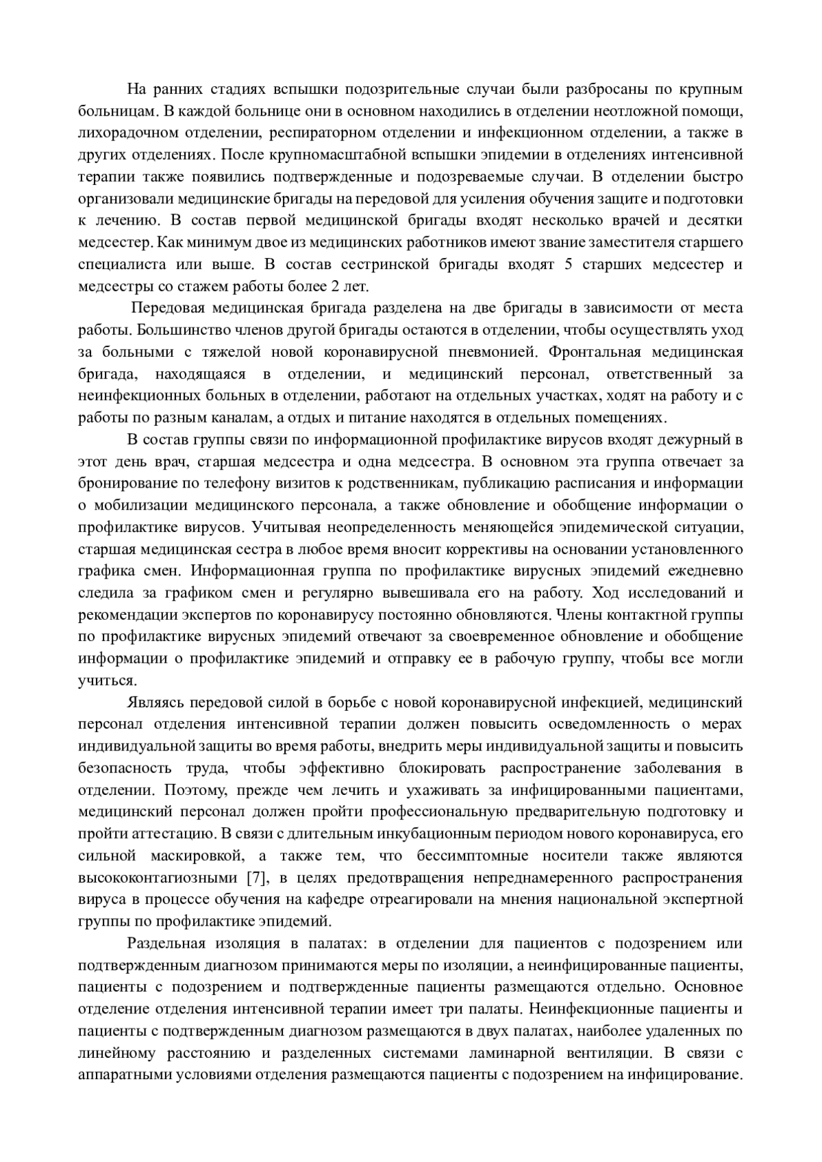 Появление и быстрое распространение новых инфекционных заболеваний оказывают большое влияние на экономическое развитие и социальную стабильность. Инфекционные заболевания являются основной проблемой здравоохранения в настоящее время и на перспективу, а перекрестное инфицирование в стационарах является одним из основных факторов, вызывающих вспышки инфекционных заболеваний [1.3]. Во время эпидемии новой коронавирусной пневмонии (COVID-19) в некоторых медицинских учреждениях заразился медицинский персонал. Подтверждено, что коронавирус (2019-nCoV) обладает сильной способностью передаваться от человека к человеку. Из-за неопределенности возникновения инфекционных заболеваний на ранних стадиях заболевания отсутствуют эффективные меры борьбы, что легко может нанести прямой вред медицинскому персоналу. Поскольку пациенты, поступившие в отделение интенсивной терапии, находятся в критическом состоянии и плохо способны позаботиться о себе, медицинскому персоналу отделения интенсивной терапии приходится проводить больше работы по лечению и уходу.