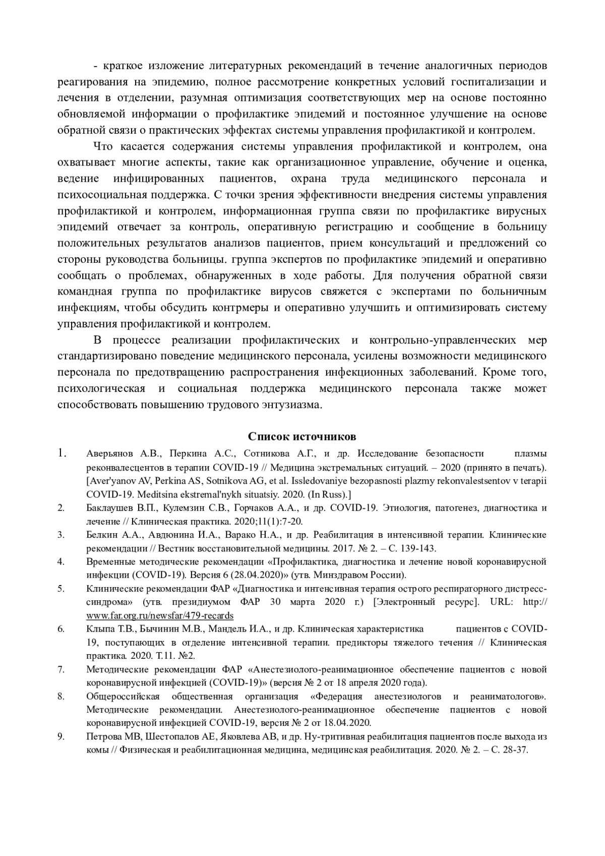 Статья: СОЗДАНИЕ И ЭФФЕКТИВНОСТЬ НОВОЙ СИСТЕМЫ УПРАВЛЕНИЯ ПРОФИЛАКТИКОЙ И КОНТРОЛЕМ КОРОНАВИРУСНОЙ ИНФЕКЦИИ В ОТДЕЛЕНИЯХ ИНТЕНСИВНОЙ ТЕРАПИИ (2024)