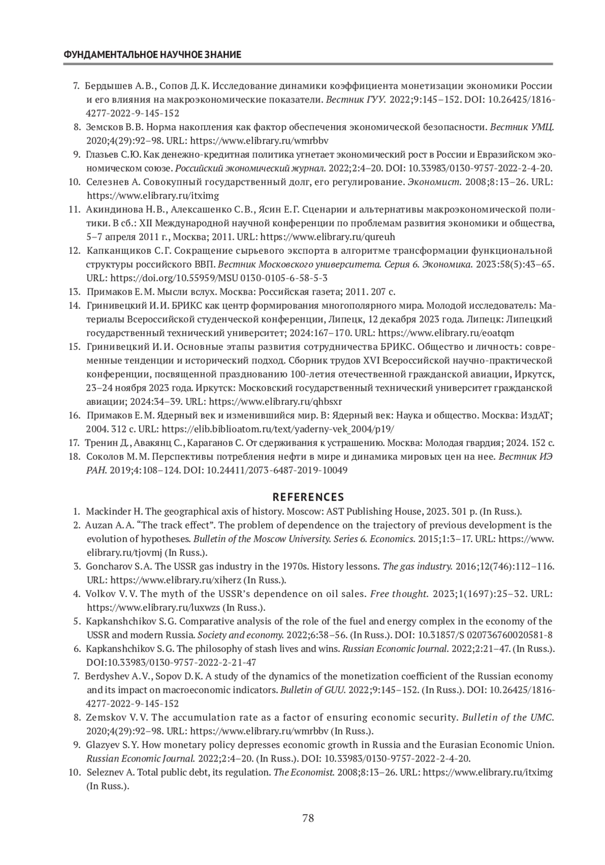 12. Капканщиков С. Г. Сокращение сырьевого экспорта в алгоритме трансформации функциональной структуры российского ВВП. Вестник Московского университета. Серия 6. Экономика. 2023:58(5):43-65. URL: https://doi.org/10.55959/MSU0130-0105-6-58-5-3
